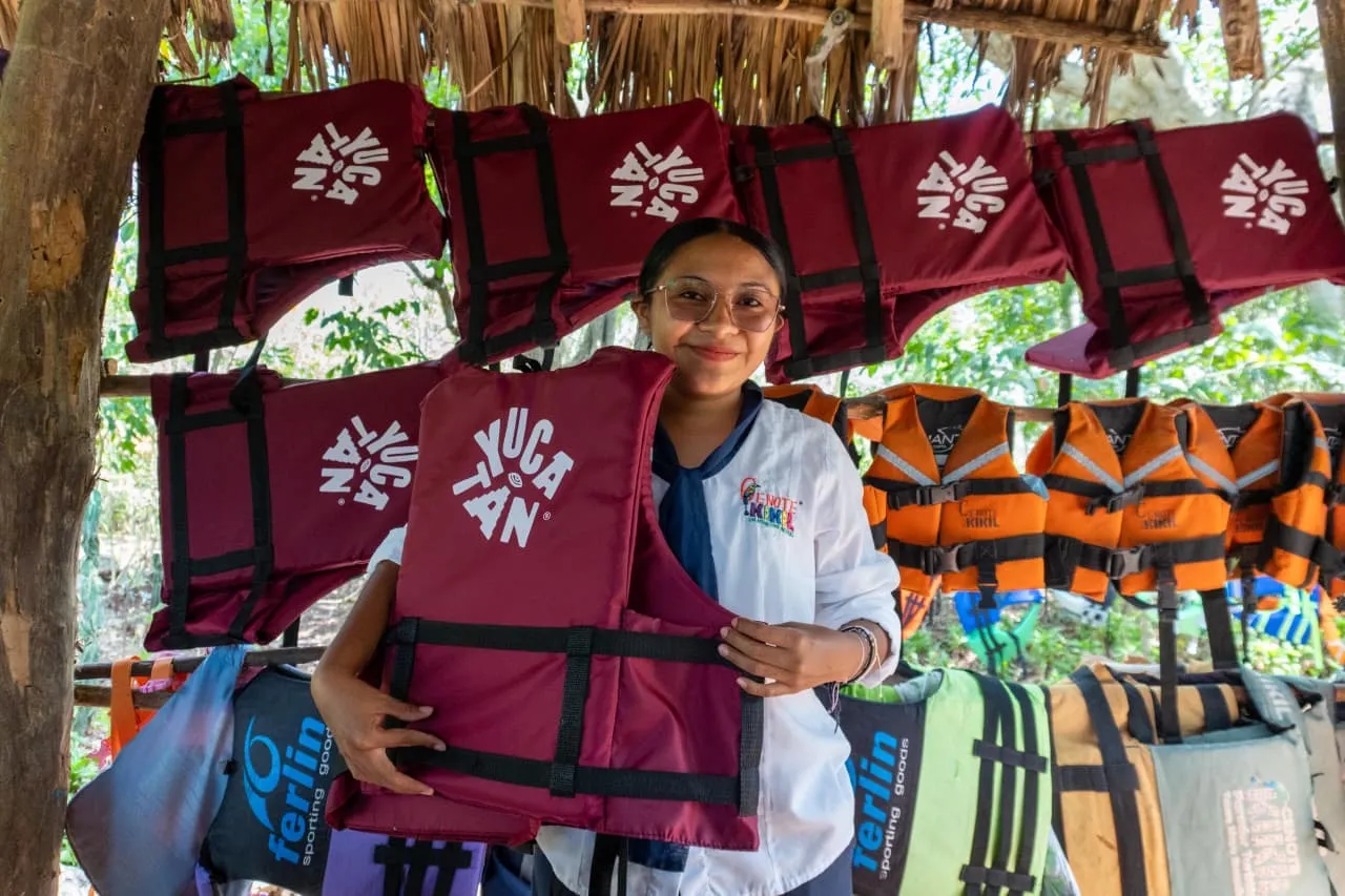 Como parte de esta gira de trabajo, también se distribuyeron 50 chalecos salvavidas en el cenote Kikil, en el municipio de Tizimín, con lo que se amplía el alcance de este programa que beneficiará a más de 50 cooperativas turísticas en todo el estado.